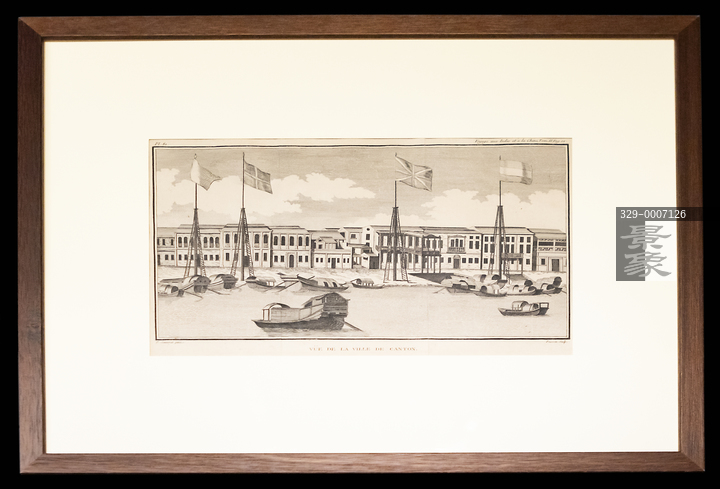 图片标题: 故宫-紫禁城与凡尔赛宫-17、18世纪的中法交往-广州市景版画-1782年-凹版画-洛里昂东印度公司博物馆藏