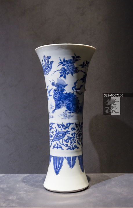 图片标题: 故宫-紫禁城与凡尔赛宫-17、18世纪的中法交往-青花瑞兽花卉图花觚-明末清初-景德镇-故宫博物院藏