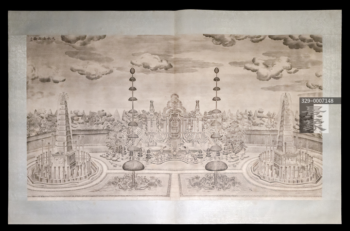 图片标题:     故宫-紫禁城与凡尔赛宫-17、18世纪的中法交往-圆明园西洋楼-大水法正面图-清乾隆-纸本铜版画-故宫博物院藏