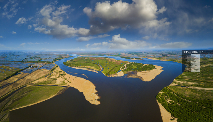 图片标题: 航拍春天松花江桦川段风光