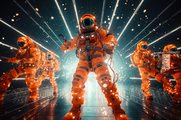 图片标题: AI生成的插图太空人跳舞庆祝