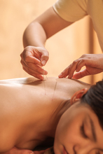 图片标题: 一位亚裔青年女士在做针灸治疗