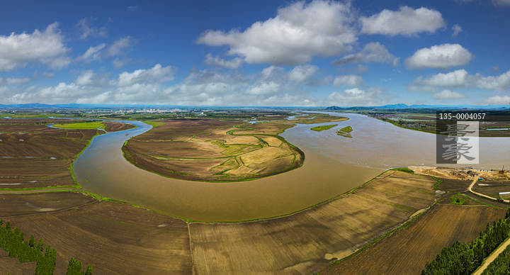 图片标题: 航拍春天松花江佳木斯望江段风光
