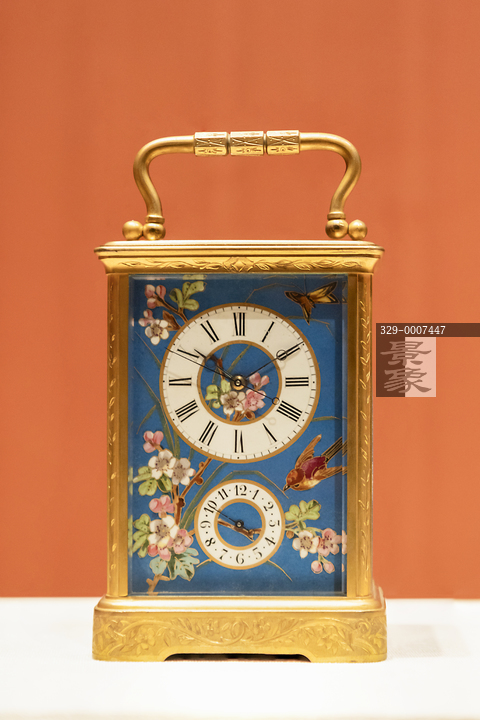 图片标题: 北京故宫汇流澄鉴-故宫出版社建社40周年展-铜镀金珐琅皮套钟-19世纪