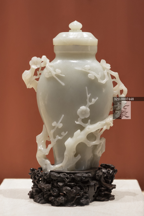 图片标题: 北京故宫汇流澄鉴-故宫出版社建社40周年展-青玉梅花纹瓶-清代