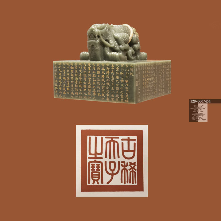 图片标题: 北京故宫汇流澄鉴-故宫出版社建社40周年展-碧玉交龙钮-古稀天子之宝-清-乾隆45年(1780年)