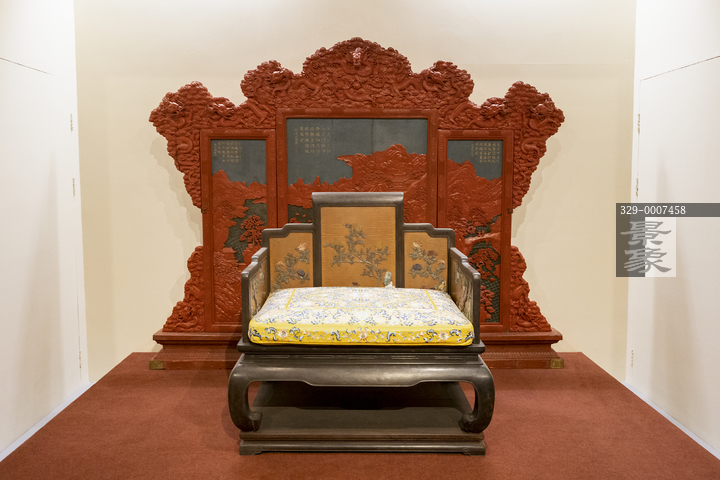 图片标题: 北京故宫汇流澄鉴-故宫出版社建社40周年展-紫檀木嵌玉花卉纹宝座-清代