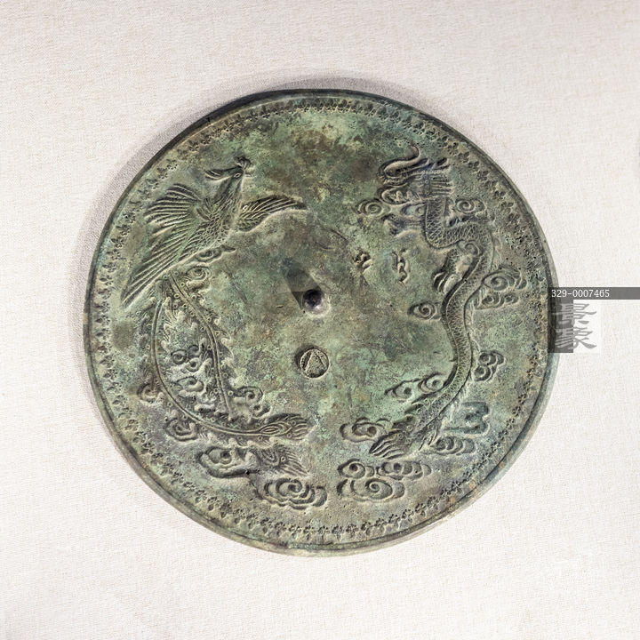 图片标题: 北京民族文化宫-文物古籍展-青铜龙凤纹镜-清代-中国民族博物馆藏