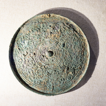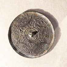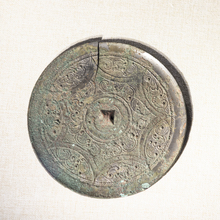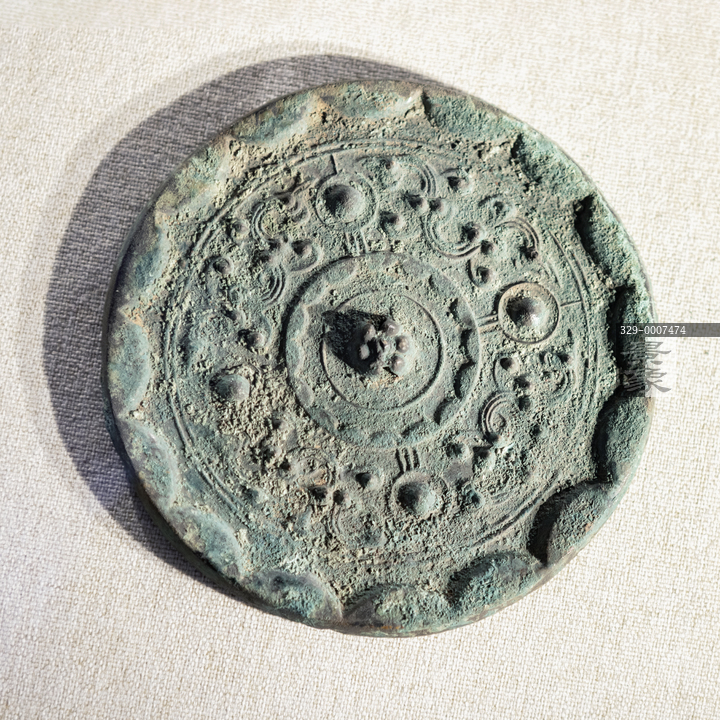 图片标题: 北京民族文化宫-文物古籍展-连弧乳钉龙纹镜-西汉-青铜质-中国民族博物馆藏