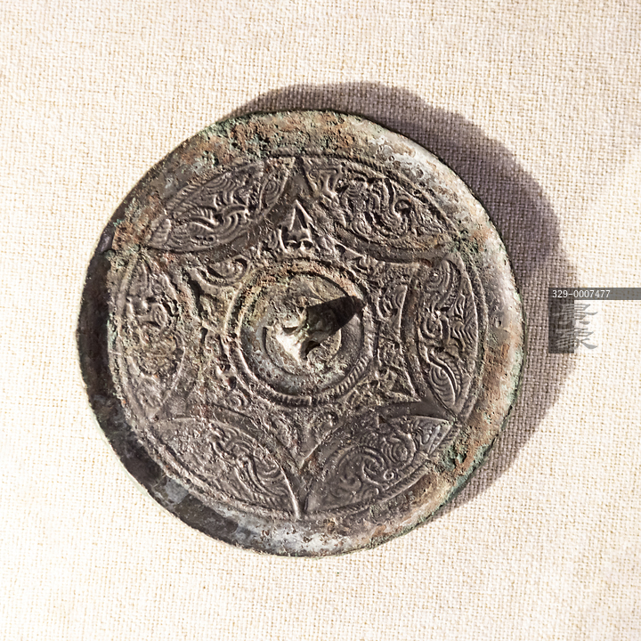 图片标题: 北京民族文化宫-文物古籍展-连弧螭龙纹镜-战国-青铜质-中国民族博物馆藏