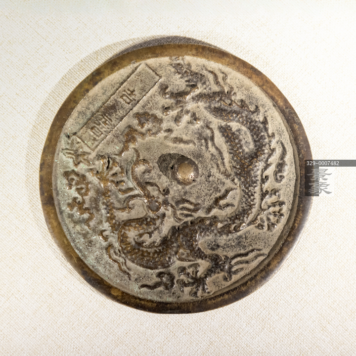 图片标题: 北京民族文化宫-文物古籍展-青铜吉音铭云龙纹镜-明代-中国民族博物馆藏