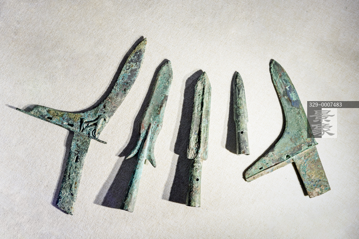 图片标题: 北京民族文化宫-文物古籍展-高脊兽面纹矛-铍形矛-铜戈-战国-青铜质-中国民族博物馆藏