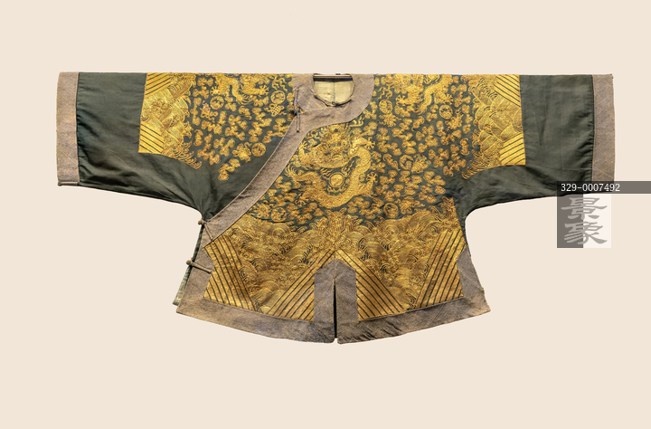 图片标题: 北京民族文化宫-文物古籍展-石青地织金锦斜襟龙褂-清代-民族文化宫藏