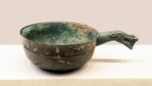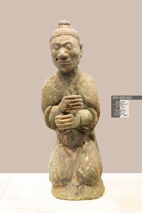 图片标题: 北京民族文化宫-文物古籍展-持伞男铜俑-战国末西汉初-青铜质-云南省昆明市晋宁出土-民族文化馆藏