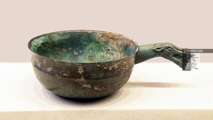 图片标题: 北京民族文化宫-文物古籍展-龙首羽纹铜魁-西汉-青铜质-1971年广西壮族自治区合浦县望牛岭1号墓出土-广西壮族自治区博物馆藏