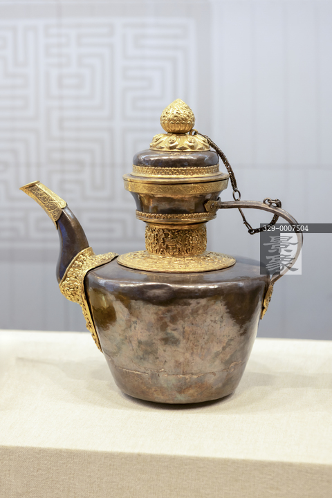 图片标题: 北京民族文化宫-文物古籍展-银鎏金錾花贲巴壶-清代-银质-五世达赖喇嘛敬献清政府德礼品-民族文化馆藏
