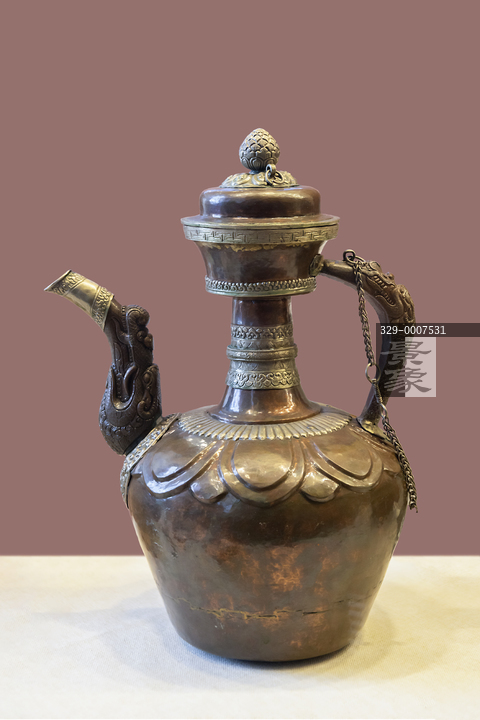 图片标题: 北京民族文化宫-文物古籍展-錾花包银铜茶壶-清代-铜质-民族文化馆藏