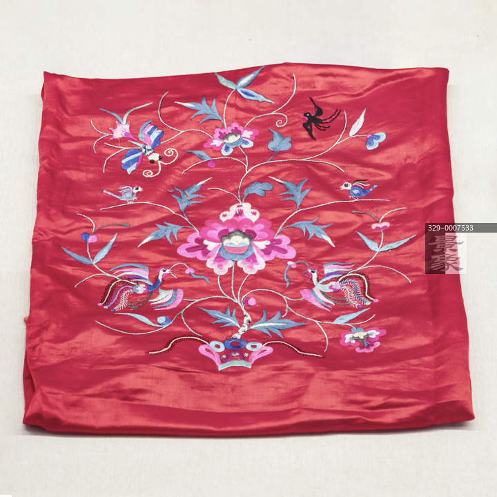 图片标题: 北京民族文化宫-文物古籍展-红缎绣花婚礼盖头-现代-丝质-民族文化馆藏