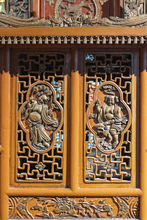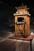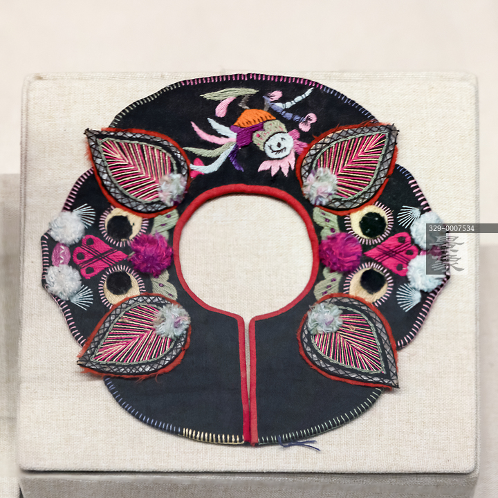 图片标题: 北京民族文化宫-文物古籍展-绣双狮头小孩围嘴-20世纪80年代-民族文化宫藏