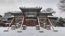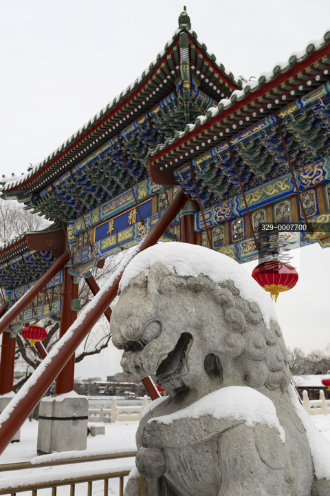 图片标题: 北京北海公园雪景-积翠牌楼石狮