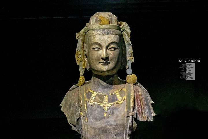 图片标题: 山东青州博物馆:东魏贴金彩绘石雕菩萨立像