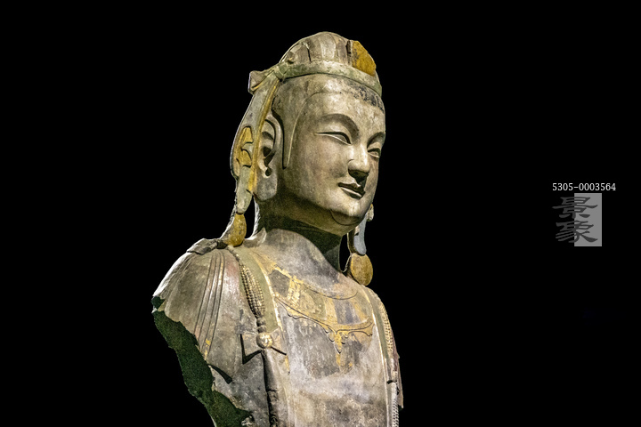 图片标题: 山东青州博物馆:东魏贴金彩绘石雕菩萨立像