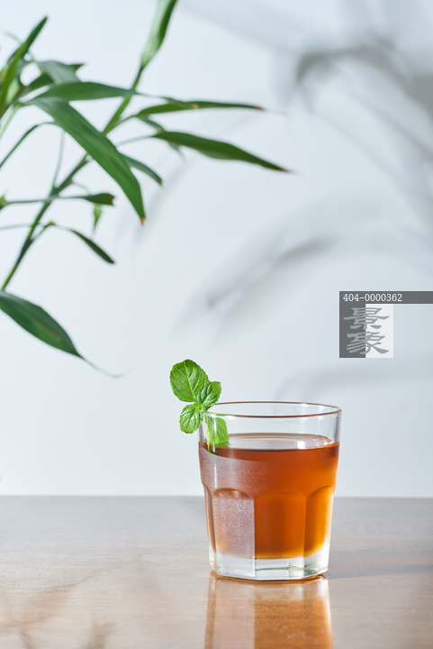 图片标题: 添加有薄荷叶和冰块的威士忌