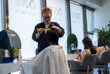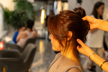 图片标题: 美发厅里美发师给顾客做头发