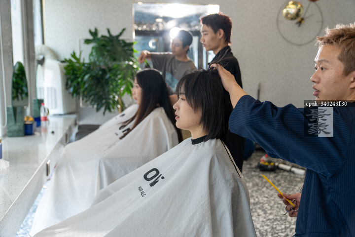 图片标题: 美发厅里美发师给顾客做头发