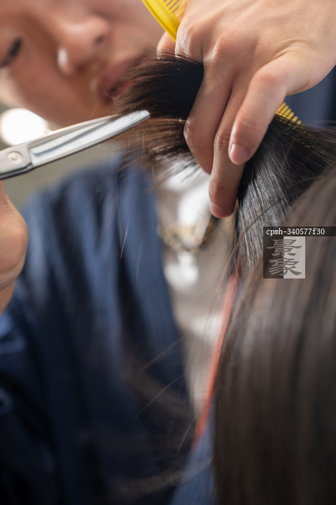 图片标题: 美发厅里美发师给顾客做头发