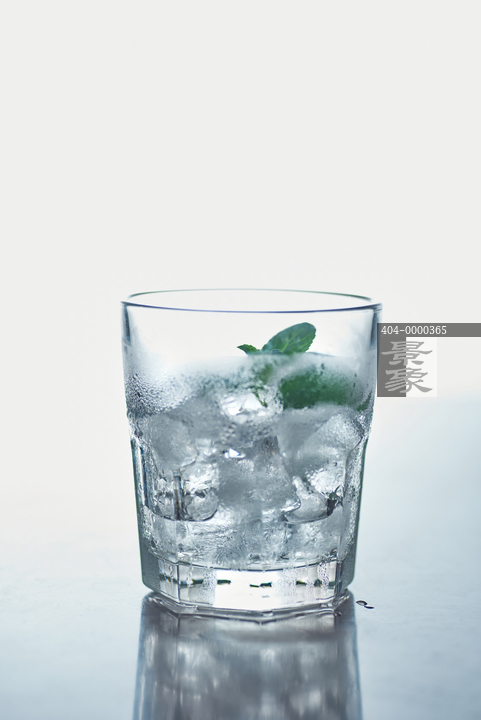图片标题: 玻璃杯中的冰块和新鲜薄荷叶