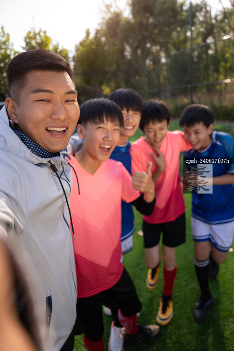 图片标题: 教练和青少年男孩自拍