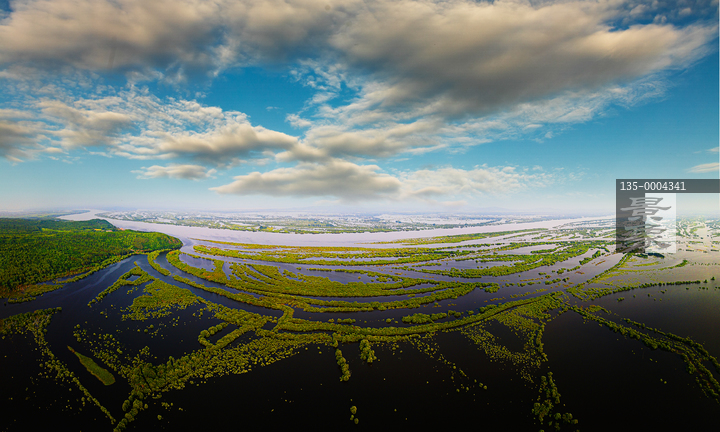 图片标题: 航拍饶河东安乌苏里江挠力河湿地风光