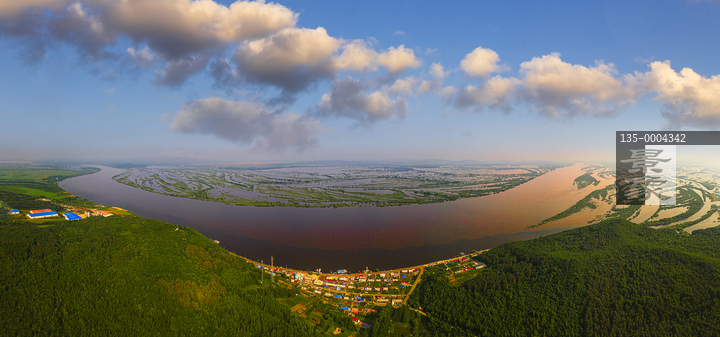 图片标题: 航拍饶河东安乌苏里江挠力河湿地风光