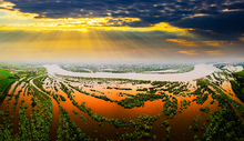 图片标题: 航拍饶河西通乌苏里江挠力河湿地风光