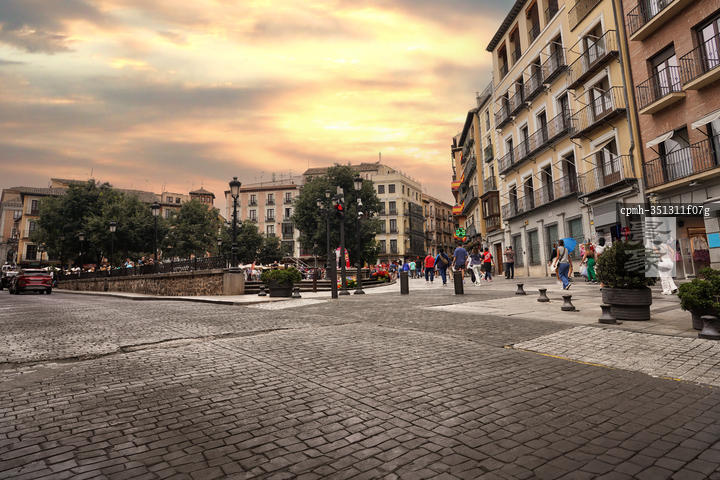 图片标题: 黄昏下的西班牙城市街景
