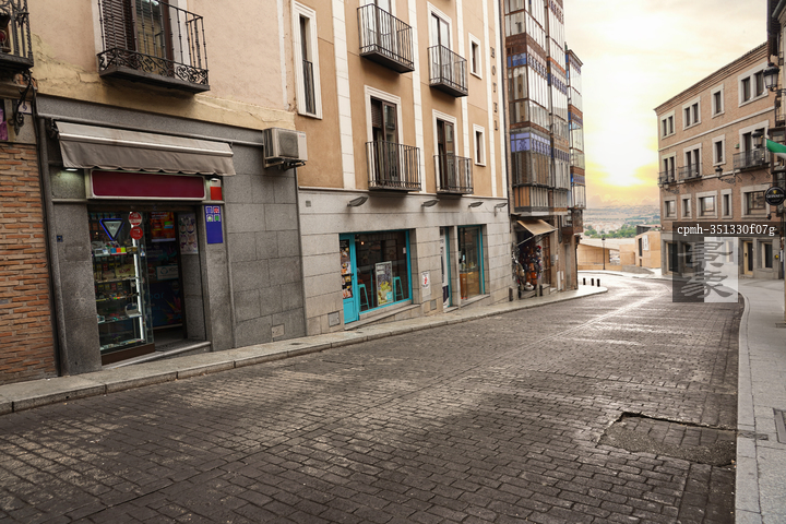 图片标题: 黄昏下的西班牙城市街景