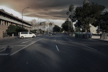 图片标题: 黄昏下的西班牙城市全景