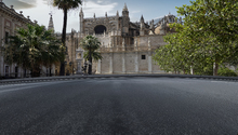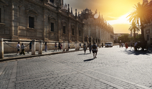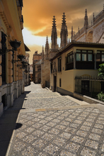图片标题: 黄昏下的西班牙城市街景