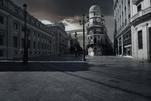 图片标题: 黄昏下的西班牙城市街景