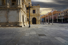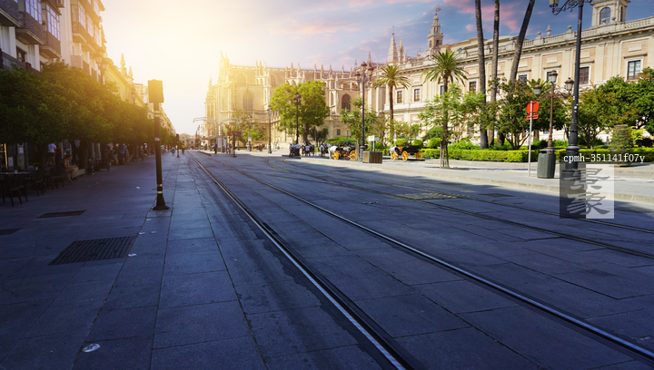 图片标题: 黄昏下的西班牙城市街景