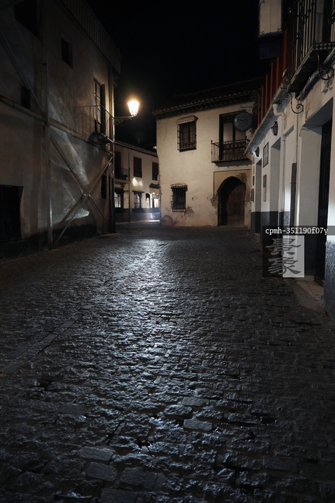 图片标题: 西班牙城市街道夜景