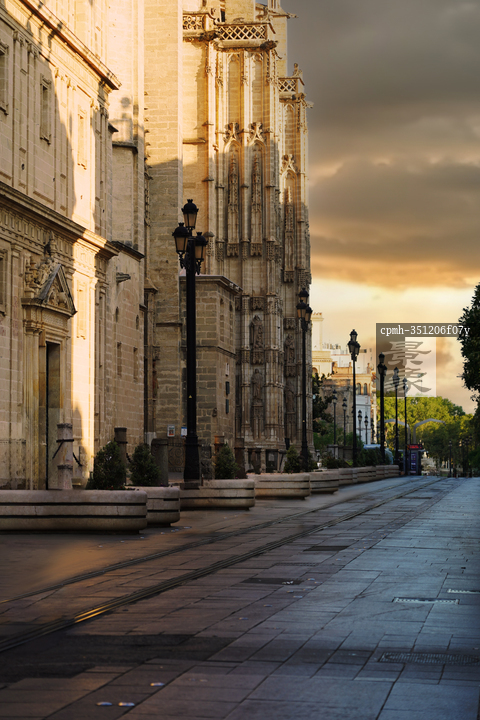 图片标题:     黄昏下的西班牙城市街景