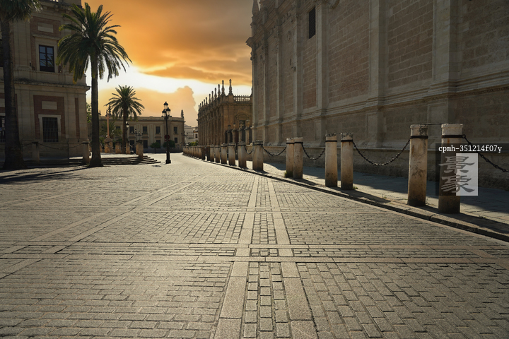 图片标题: 黄昏下的西班牙城市街景