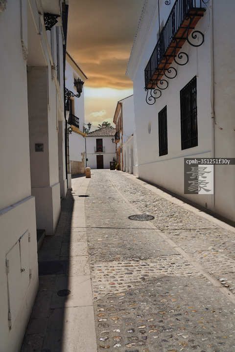 图片标题: 黄昏下的西班牙城市街景
