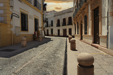 图片标题: 黄昏下的西班牙城市街景