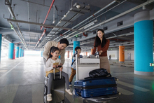 图片标题: 机场航站楼内的四口之家
