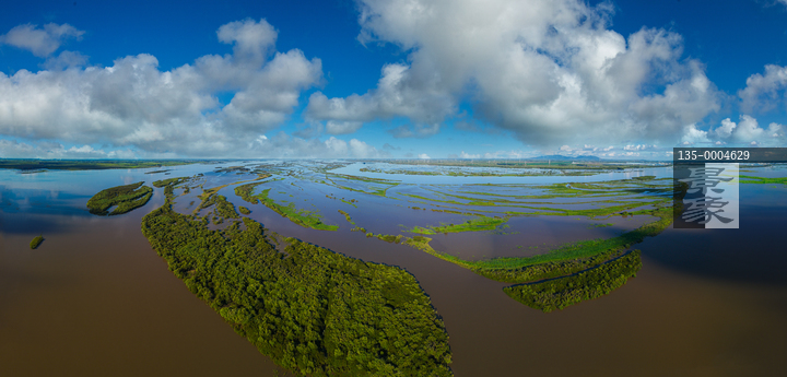 图片标题: 航拍松花江绥滨沿途江面湿地风光