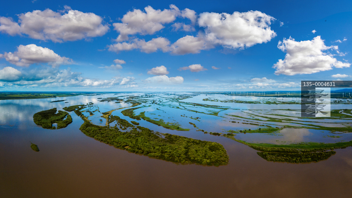 图片标题: 航拍松花江绥滨沿途江面湿地风光