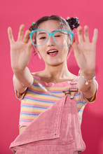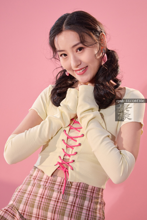 图片标题:     粉色背景下的一位年轻快乐女孩
